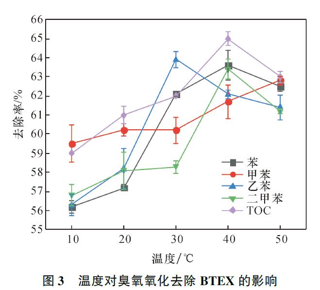 2.2溫度對(duì)臭氧氧化降解BTEX的影響