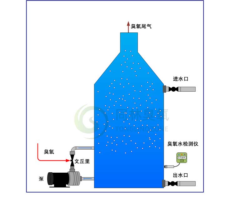 臭氧溶解與泵和文丘里噴射器是簡單的設(shè)置和相當(dāng)有效。由于文丘里管的強力混合作用,這將在槽井中混合水,并比典型的氣泡擴散器實現(xiàn)更高的臭氧向水中的傳質(zhì)。